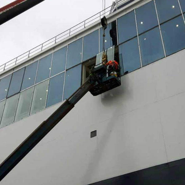 Clean with non corrosive, non abrasive cleaners. No scrub pad nor pressure cleaner should be used. Care should be taken not to scratch the powder coated paint on the underside of the glass.